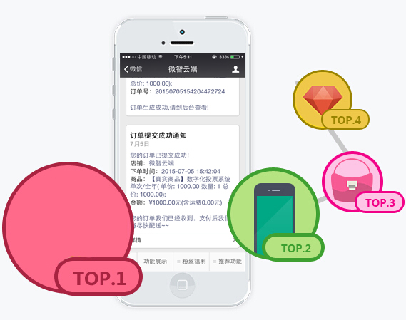 拥有完善的订单支付管理机制,配合微信支付、支付宝支付、银联支付,三方监管的完善机制,让订单和销售金额算无遗漏,结合微信商户平台,交易无忧,结算无忧!